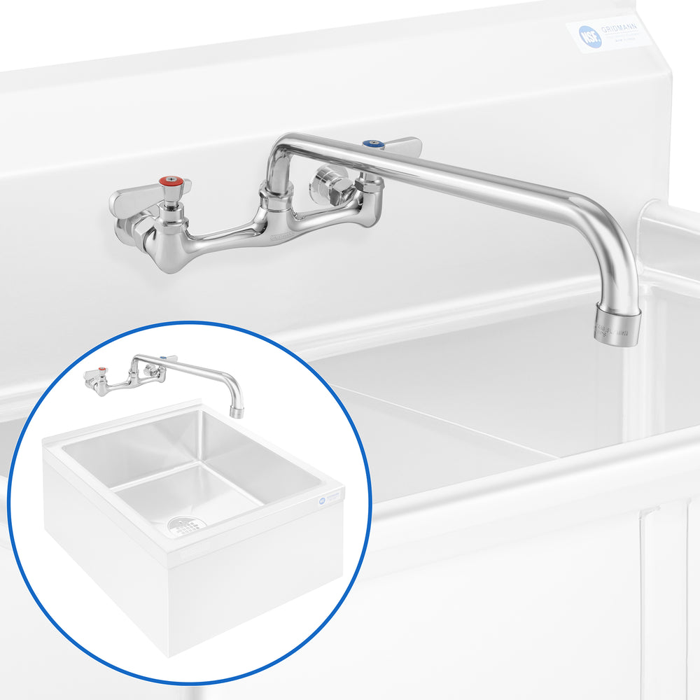 - Dual lever handles: The dual lever handle design is perfect for restaurant kitchens and food prep areas, making it easy to control water flow. The handles are clearly labeled for hot and cold, allowing for precise temperature adjustment.