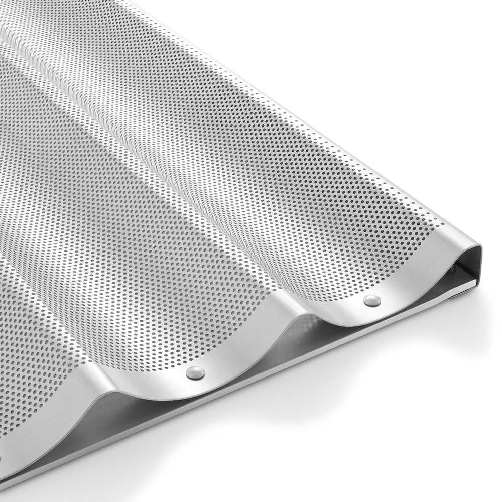 - Commercial-grade construction: This French bread pan is crafted from heavy-duty, commercial-grade 3003 aluminum and features durable construction, which helps maintain the pan's shape and performance over time, even with frequent baking.